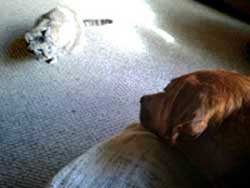 It took months of good nutrition before she could be spayed and her hip problem diagnosed. Carmella had hip surgery and had a one month recovery. She finally realized that she could walk on all fours!!! After her surgery, she blossomed. She was such a happy dog and always had a toy or bone in her mouth. She even has a small plastic swimming pool - she loves the water.