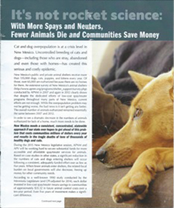 During the 2015 New Mexico legislative session, APNM and APV will be working hard to secure substantial funds for more accessible and affordable spay/neuter services for animals. Based on case studies in other states, a significant reduction in the numbers of cats and dogs entering shelters will occur following a consistent, adequately funded effort over as few as five years.